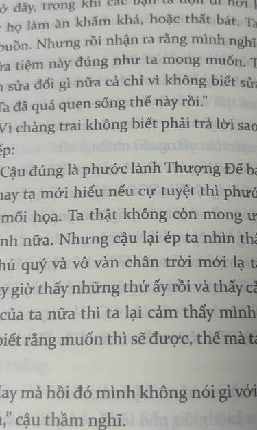 Ông chủ tiệm không phải không có ước mơ, nhưng sự khao khát thực hiện ước mơ của ông nhỏ bé hơn nhiều so với nỗi sợ hãi khi phải thay đổi cuộc sống hiện tại. Cuộc sống cũng như vậy, "tốt là kẻ thù của vĩ đại". Đa phần chúng ta từ bỏ trở thành phiên bản tốt nhất vĩ đại nhất của bản thân khi phiên bản hiện tại đã đủ tốt - hoặc ta giả vờ rằng nó đã đủ tốt. Để làm gì ư? Để không phải chịu rủi ro, không bao giờ thất bại. Cách tốt nhất để không thất bại là không làm gì cả.